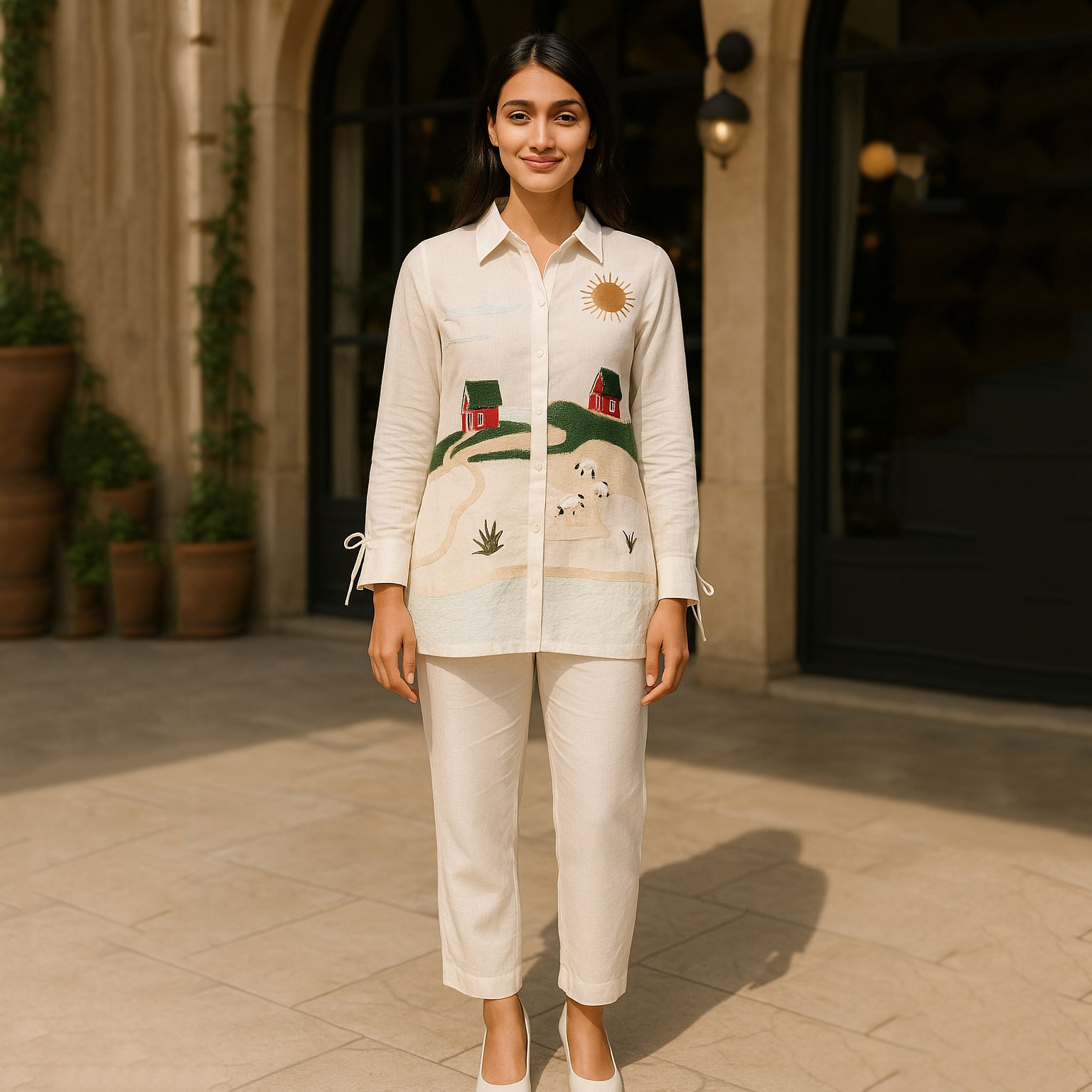 Embroidered Green White Kurta Pant Co-ord Set